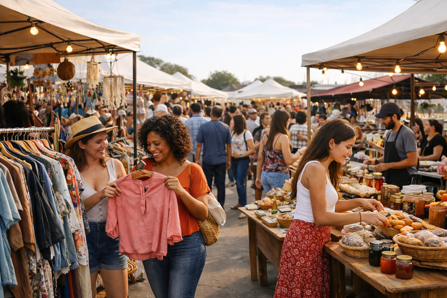 Entre as atrações, o público encontra roupas de segunda mão, peças vintage, acessórios, decoração artesanal e produtos autorais, além de opções gastronômicas que vão de doces caseiros a pratos da culinária regional. Os eventos também costumam contar com música ao vivo e espaços de convivência, criando um ambiente de lazer para toda a família.
